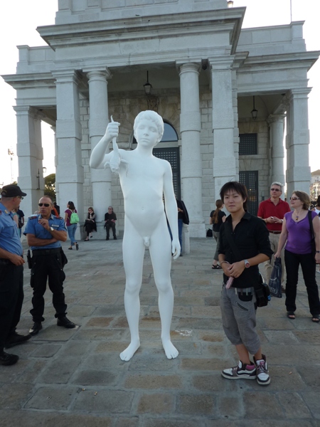 昨年はまだ工事中だったプンタ・デラ・ドガーナも6月にオープンし、突堤の先にはカエルをぶら下げたチャールズ・レイの作品が立っています。ここには入場料を払うことなく行くことができます。