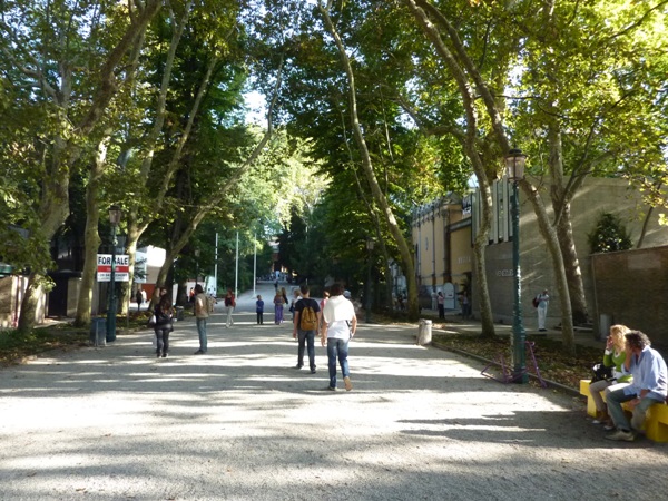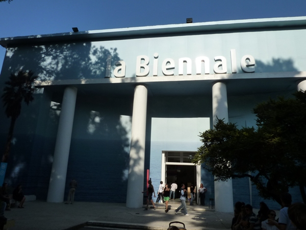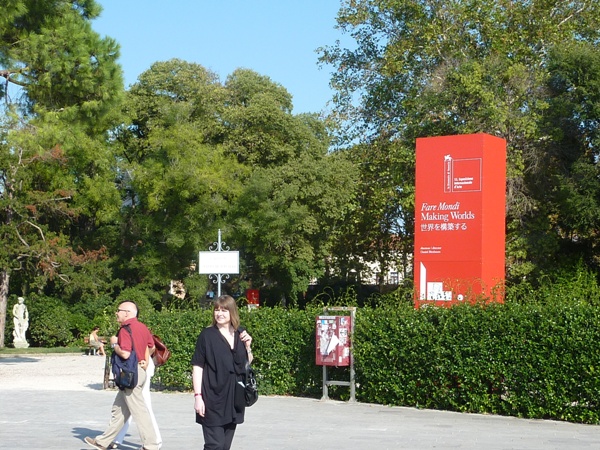 今まで何度かヴェネチアを訪れたことがありましたが、ビエンナーレを開催中に来たのは今回が初めてでした。ヴァポレットをジャルディーニで下りるとビエンナーレのサインがあります。(それなのに最初間違った方向に進んでしまいました)ジャルディーニ(庭園)という名のとおり、公園が広がっていてそこにビエンナーレのメイン会場があります。