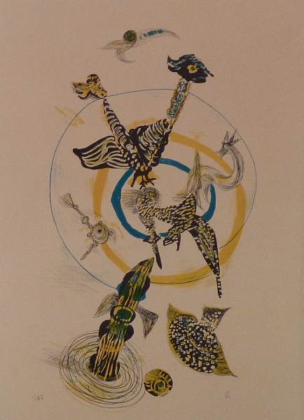 瑛九のリトグラフでやっかいなのは、制作当時あまりにも売れなかったもので、亡くなったときアトリエにはサインのされていない作品が多く遺され、没後それがいろいろな形(その時々の事情)で流通してしまったことです。このことを念頭においてください。