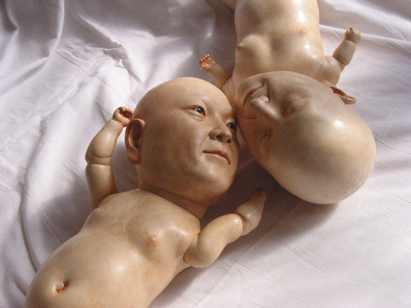 胡粉で仕上げた人形。仕上げに磨きをかけないので、砂糖菓子のようなマットな質感。