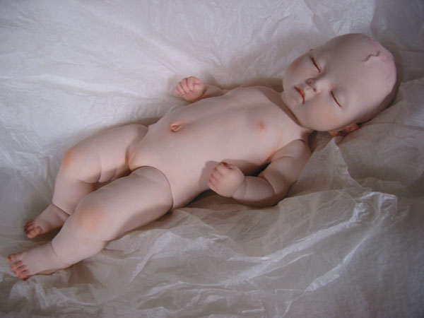 この地下の空洞世界ができない乾燥のさせかたを最近発明しました。 「焼きイカの原理」とでも申しましょうか。(あまりこういうことを書くと人形のイメージを損なう気がしますが。)厚めに盛った表面にあらかじめカッターで刻みを入れておくのです。そうしておけば、強引に乾かしても乾燥に従ってそこが割れていくだけで、地下世界ができることはありません。あとでその刻みの谷を埋めていけばいいわけです。