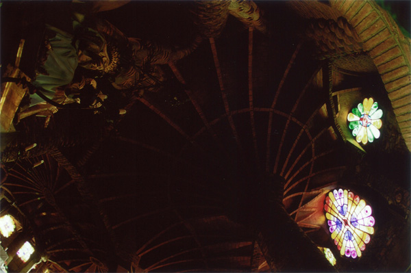 一方、植田先生の写真は、三脚を立てたりせず、手持ちの小型(35ミリの一眼レフ)カメラで撮られた「スナップ」です。水平と垂直がきっちり出ていなかったり、建物が上すぼまりになったり、余計なものが写り込んだりしています。けれどもそれが魅力となっています。それは決して「災い転じて」ではありません。むしろそれは、意識的に選び取られたもののように思えます。乱暴な譬えが許されるなら、写真館の大型カメラによる演出・修正写真を排して、ライカによるスナップという手法で肖像写真に(というより日本の写真史に)革命を起こした木村伊兵衛を思わせると言ったら言い過ぎでしょうか。