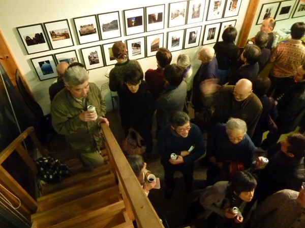 トークの後のレセプションにて。左、階段を登るのは植田実さん。