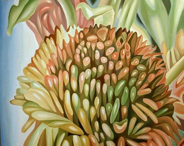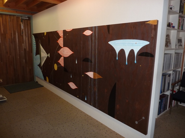 大きな絵3根岸文子この作品は昨年の「VOCA 2009」に出品された作品ですが、4枚組で横幅が4m近くあり大きすぎて今まで展示できませんでした。ときの忘れものでは今回が初お目見えです。