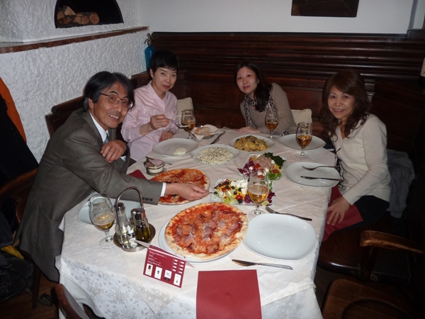 会食夜、日本から一緒に参加した画廊の方と、うちのブースにボランティアで駆けつけてくださっているOさんとで、街のピザレストランに行って会食をしました。味とボリュームからすると結構リーズナブルなお店でした。