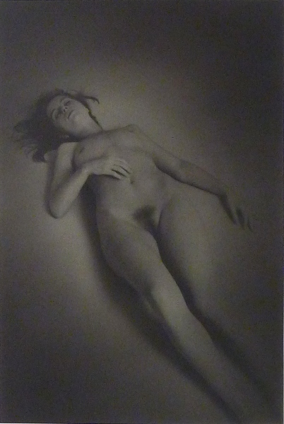 多彩な作品を発表している作家ですが、この「Naked Passion」のシリーズも、複数のプリントを使ってひとつのイメージを見せたり、モデルに映像を投影して撮影するなどいろいろな試みをしています。この作品も、モデルの周囲がぼうっと明るく浮揚感を感じさせるようにプリントされています。