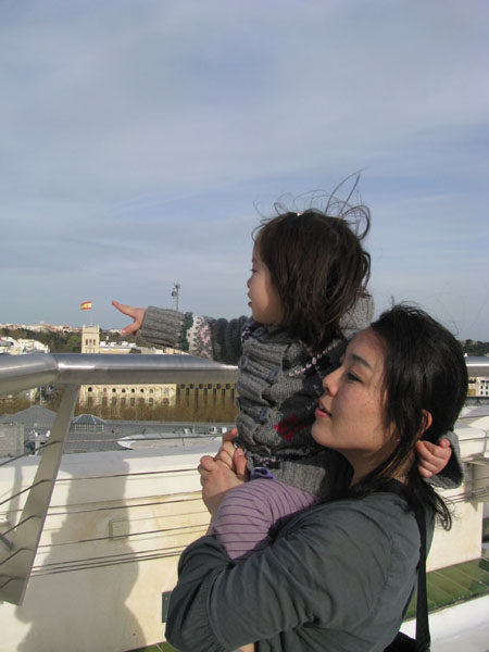 根岸さんと娘さんと散歩。屋上からマドリッドを一望しました。