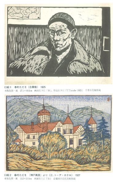 「春村ただを」は、戦前の神戸で活躍した版画家である。日本創作版画協会、日本版画協会、春陽会等へ出品し、神戸出身の創作版画史を代表する作家・川西英(1894~1965)の仲間であった。当地でも知名度は高くないが、洒落た版画集『神戸風景』(1927)や『春』(1931)を出版し、昭和初期にモダニズム都市・神戸の良質なイメージを川西とほぼ同時期に表現した、注目するべき点が多い作家である。彼の活動は、神戸で1924(大正13)年より刊行された版画誌『HANGA』(神戸版画の家)への作品発表と、1929(昭和4)年に川西英を中心に結成されたグループ・三紅会(1936年の第6回展まで開催)への参加が知られる。