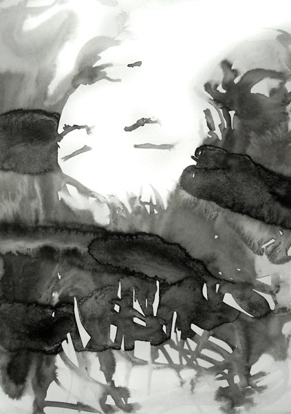 しかし、水墨画を描く前に目の前に見える白紙は何もない状態ではない。白紙は描画以上にそこに既に存在している。白紙と墨は対等な関係として描画され存在が変化していくにすぎない。全て、初めから終わりまで存在し、同時に空でもある。