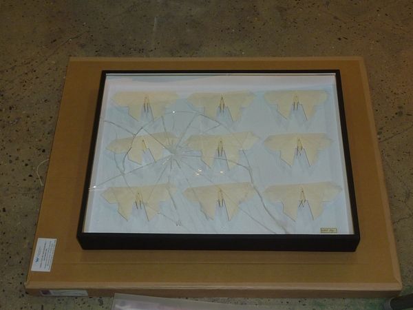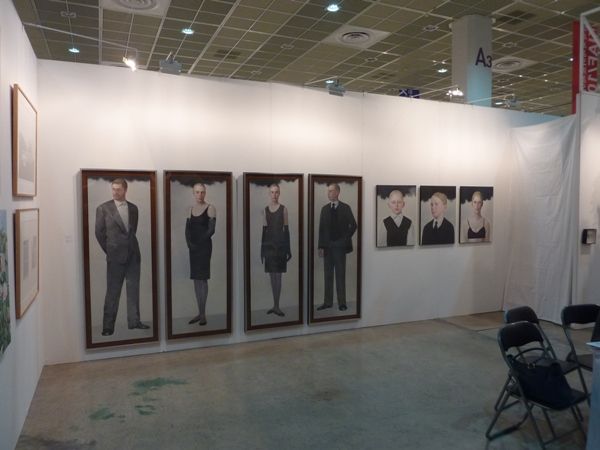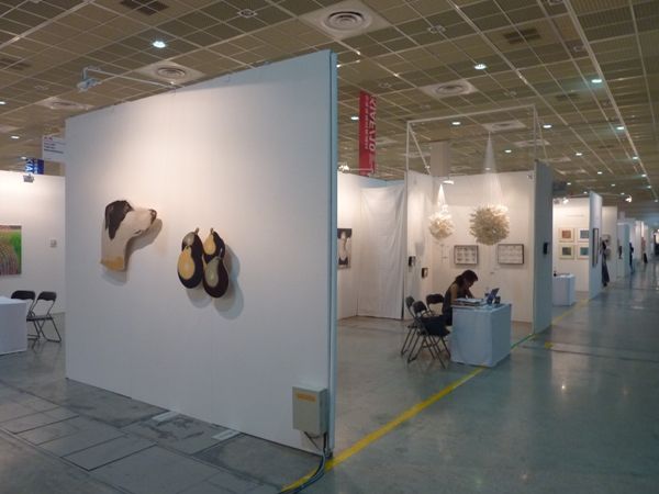 金浦空港から13時にKIAF2010会場であるCOEXに直行(リムジンバスの終点です)、昼食も摂らず(機内食でお腹いっぱいでした)にKIAFの出展受付を済ませて会場に入りました。入り口を入って左にまっすぐ進むとA-76ときの忘れものブースがあります。他の画廊もまだ展示作業を始めたばかりという様子。ブースに着くと、パリからソウル入りしたTSUYUさんが、既に作品のセットを始めていらっしゃいました。紙で作った蝶を標本のように針で箱に刺しているところでした。針を使った作品はそのままでは機内持ち込みができないため、現地でセットをしなければならなかったそうです。