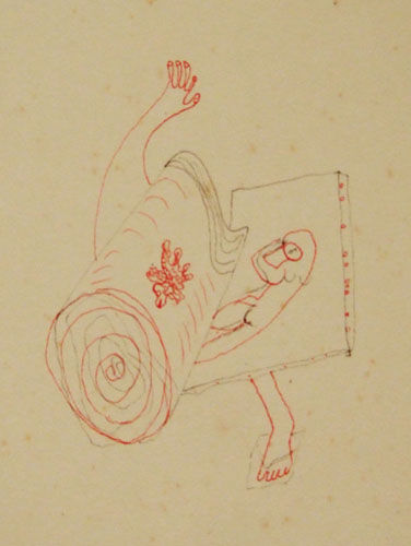 黒と赤いインク(ペン)で描かれた<愛のデッサン集>と名づけた一連の作品がどのくらいあるのか、まだよくわかりませんが、宮崎県立美術館の1996年の回顧展「魂の叙情詩 瑛九展」図録98ページに4点が掲載されています(出品番号262、263、264、267)。サイズもほぼ同じですから宮崎県立美術館所蔵作品と同じ連作の中に一点に間違いないでしょう。