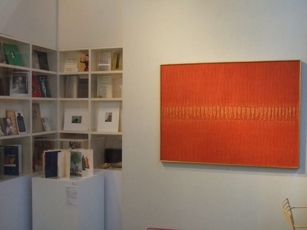 書棚にはマン・レイやジュリエット夫人から宮脇愛子に贈られた画集、カタログ、案内状、絵葉書などなど。その多くに献辞とサインが記入されています。