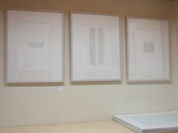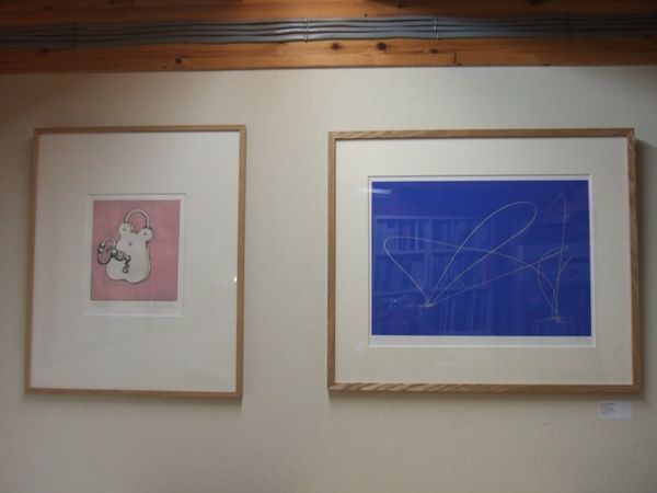 右)マン・レイの銅版画『鍵穴』と、宮脇愛子のシルク『UTSUROHI o』