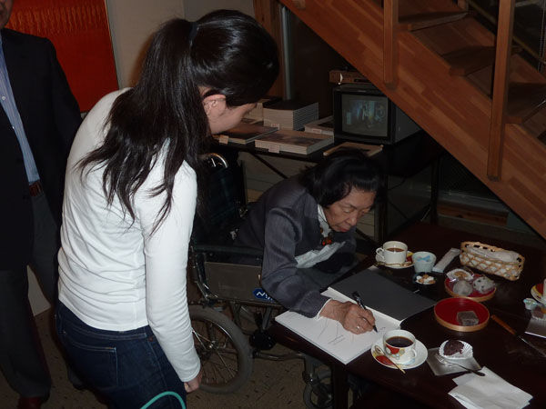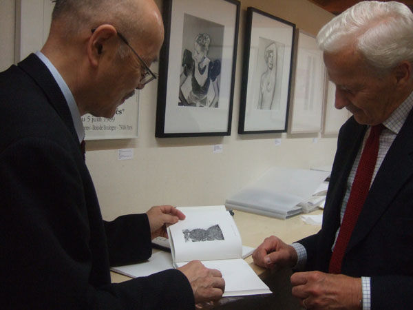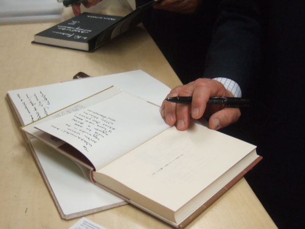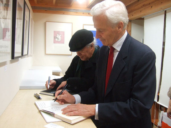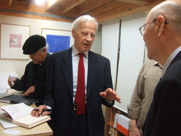 自著にサインする磯崎新、ファルクマン2自著にサインする磯崎新、ファルクマン1