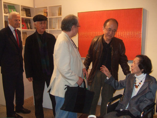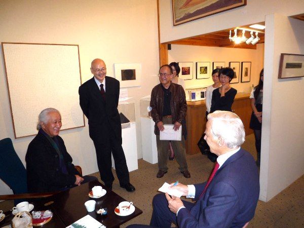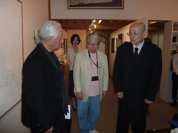 細江英公、朝山さん来廊細江英公と宮脇左)偶然、写真家の細江英公先生と、編集者の朝山耿吉さんが来廊(朝山さんとは1963年に出会って以来の長いお付き合いです)。思わぬ再会を喜ぶ。
