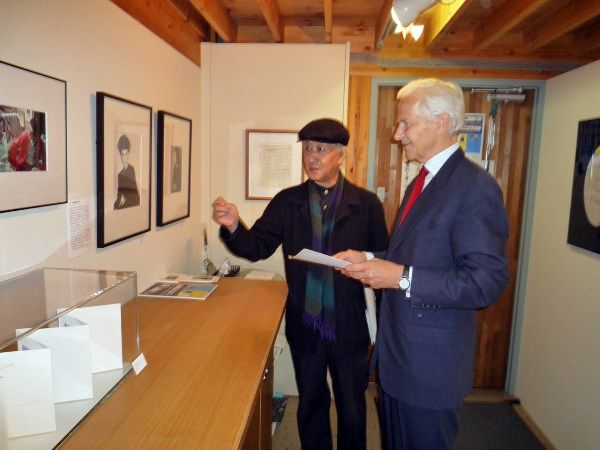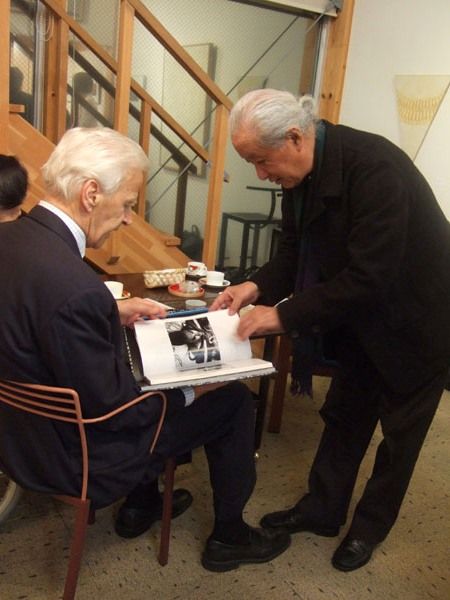 右)自分の写真集を見るファルクマンさんを撮影する細江英公先生