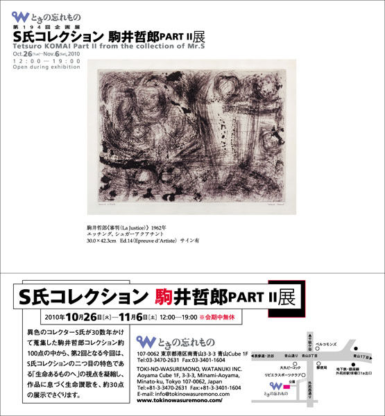 ◆ときの忘れものは、10月26日(火)~11月6日(土)「S氏コレクション 駒井哲郎PART II展」を開催しています(会期中無休)。