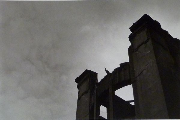 代表作ともいうべき「鳥」は、広島に友人と旅行された際のもので、こちらが勝手に「古代の遺跡」かと思い定めていた場所が、実は「原爆ドーム」であることをうかがってびっくり。鳥もそのときに偶然(!)そこに飛んできて、ほんの短い間だけ止まっていたかと思うとすぐに飛び去っていきましたということで、やはり写真家になるような人は「何か持っている」のだなあと納得したことでした。「原爆ドーム」という誰でもよく知っている、映像で何度も見ているはずの場所を、「古代遺跡」にしてしまうその力に、飯沢耕太郎さんの「写真家とはカメラを抱えたシャーマンである」(『写真的思考』、河出書房新社、2009年、11頁)との言葉を思い起こしました。