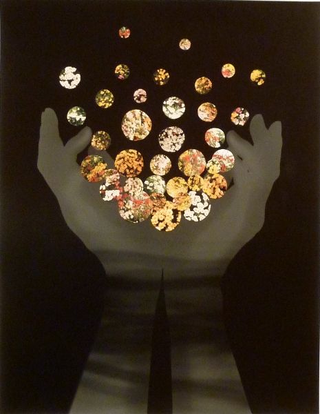 安友志乃師匠(文章を書く上での私の師匠なので師匠と呼ばせて頂きます)が主催しておられたワークショップに参加したのをきっかけに、「ホカリファインアート」での展示が決まり、1999年の「未来への涙」、2000年の「Light and Shadow」、2002年の「Anthorogy」と個展を重ねられることになります。2002年末のホカリ閉廊後は、同じくホカリの展示作家でもあった村松真理子さんが開かれた北青山のギャラリー「DAZZLE」http://gallery-dazzle.com/index.htmlで2003年に「フォトグラムとコラージュ」、築地仁、鈴木秀ヲさんとの3人展「掌の宇宙」、2004年に「グッドバイ」、2006年に「光と水と凪の心」をそれぞれ開催してこられました。その後は、プリンターとしてのお仕事が忙しくなって、しばらくご自身の作品を撮る余裕がなかったとのことでしたが、最近になっていよいよ写真家としての活動を再開されたとのことでした。
