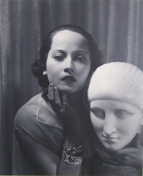 彼は第一次世界大戦前のピクトリアリズム隆盛の時代からも著名人や芸術家の卓越したポートレート写真で名を馳せていましたが、この頃にはとくにハリウッド映画で活躍する俳優、女優を数多く撮影しています。世界大戦間期は、サイレント映画からトーキー映画へと移行し、ハリウッドがアメリカの映画文化と映画産業の中心地になった時代でもありました。ポートフォリオに収録されている作品としては、舞台・映画女優のアン・ハーディング(Ann Harding, 1902-81)、多重露光で重ね合わせられたコンラート・ファイト(Conrad Veidt 1893-1943)とルーペ・ヴェレス(1908-44)、マール・オベロン(Merle Oberon, 1911-79)を撮影したものがありますが、とくにマール・オベロンのポートレートに明らかに見て取られるように、モデルの顔立ち、表情を際立たせるような照明効果を駆使しています。ピクトリアリズム時代の写真では、撮影後の印画法にいよって、ハイライトを強調し、影を背景の中に溶け込ませるような表現を多用していた(例えばJ.P.モーガンのポートレート(1906)などがその典型でしょう。)のに対して、この時期のポートレートは、背景から輪郭を浮き上がらせ、画面全体での黒と白のシャープなコントラストが作り出されています。女優グレタ・ガルボのポートレート(1928)もまた、巧みなライティングで端正な顔立ちを際立たせ、黒いドレスと背景のコントラストが作り出された典型例と言えるでしょう。