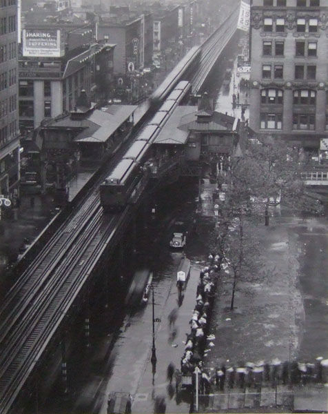 ニューヨーク、マンハッタンの6番街と42丁目の角にあり、今の季節にはスケートリンクが作られてニューヨーク市民の憩いの場となっているブライアントパークの1933年の写真です。雨に煙るニューヨークの街を撮った叙情的な作品ではありますが、1929年に始まった大恐慌はこの頃ピークを迎え、アメリカの失業率は25%にまで達していました。タイトルの「Breadline」というのは、パンの配給を待つ列のことで、写真に写っている行列は、雨の中、新聞紙で雨をしのぎながらパンを待つ人々なのです。
