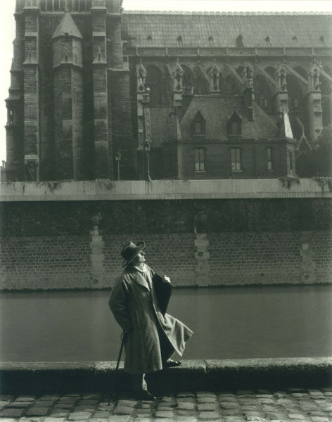 セーヌ川のほとりでやけに格好をつけて立つこの人物は、エドワード・ゴードン・クレイグ(1872-1966)という舞台演出家であり、俳優であり、プロデューサーでもある人で、『劇場の芸術』(1905)という舞台演出についてのエッセイは大きな反響を呼びました。それまで足元から照らしていた照明を天井からに変えるなど様々な改革を行いました。その自信に満ちた姿を劇場的な背景を使ってダイナミックなポートレートにしています。