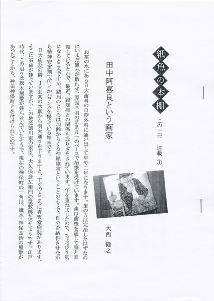<この一冊 連載1 田中阿喜良という画家>というタイトルを見て、ちょっと驚き、懐かしく思いました。