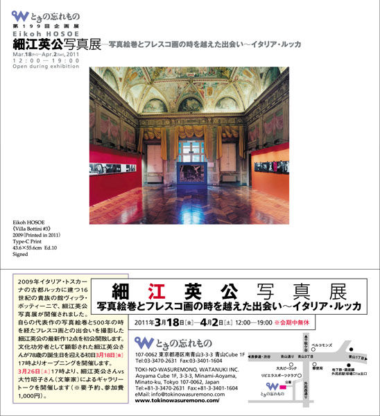 ときの忘れものでは、3月18日(金)より、昨年の文化功労者に選ばれた写真家・細江英公の新作による「細江英公写真展―写真絵巻とフレスコ画の時を越えた出会い~イタリア・ルッカ」を開催いたします。