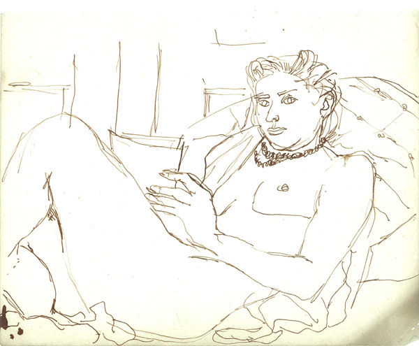 今回展示される素描のうち、No.21はダリの《偏執狂的‐批判的都市の郊外 ヨーロッパ史の周辺の午後》(1936年)の部分模写である。ダリの作品は『アトリヱ』1937年6月号(特集「前衛絵画の研究と批判」)に図版掲載されている。もともとのダリの作品では、性器の強調された馬の後姿、馬の頭蓋骨、ダリの妻ガラが捧げ持つ葡萄の房にイメージ連鎖がもたらされているが、野田の素描では三者の形態上の類似はそれほど強調されていない。野田の興味は構図、つまり人物・建物・風景の組み合わせのほうにあるようにもみえる。野田は先の発言で「その変態的側面はこれを排撃し」と述べているように、ダリの幻想から性や死に関わる部分を脱色している。そして「その表現方法とか、そのエスプリを利用転化する」ことに専心しているようだ。人物と風景とを自由に組み合わせ、都会人の白昼夢を浮かび上がらせること。ではその夢の内実とは何だったろうか。