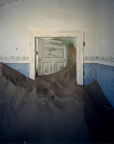 私はすでにナミビアを知っていたから、砂漠のダイヤモンド鉱山の廃墟の話を聞かされたとき、直感的にどういうところであるかを理解し、行きたいと思った。予定を変更して、初めてナミビアに行った時のように。こうして、「室内の砂丘」のほとんどの作品が撮影された、2006年の尾形優と一郎の旅に私は同行したのである。