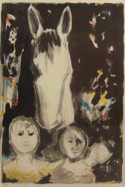 「馬」といえば海老原。1954年頃に集中して14点のリトグラフを制作していますが、中でもこの「馬と少年」は版画史に残る名作でしょう。