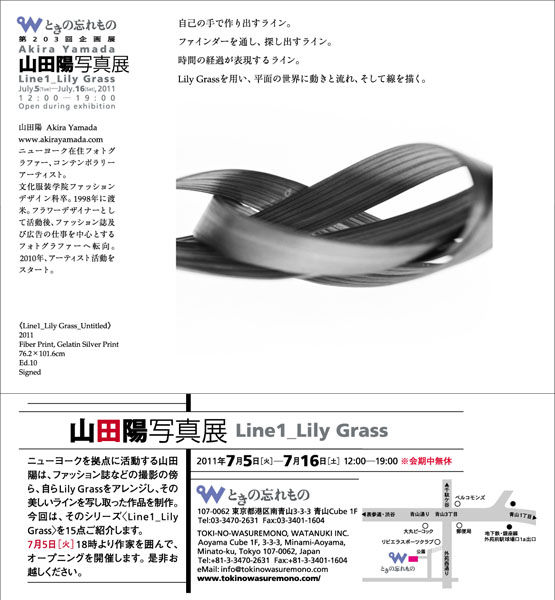 ◆ときの忘れものは、2011年7月5日[火]―7月16日[土]「山田陽写真展 Line1_Lily Grass」を開催します。