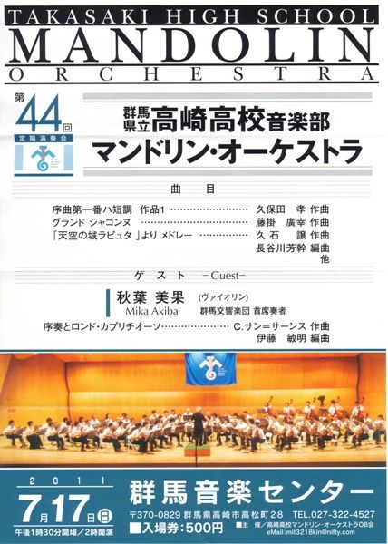 ◆高崎高校マンドリン・オーケストラ(TMO) 第44回定期演奏会
