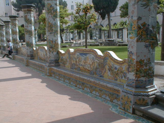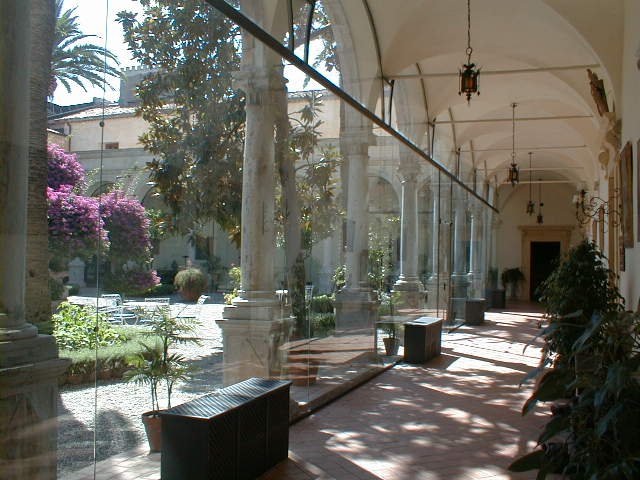 このロッジアに囲まれた中庭をキオストロといいますが、僕が世界で一番美しいと思うのは、ナポリのサンタ・キアラ教会にあるキオストロです。