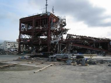 津波により鉄骨部分だけが残り、立方体フレームが剥き出しになった、南三陸町の防災センターの写真です。