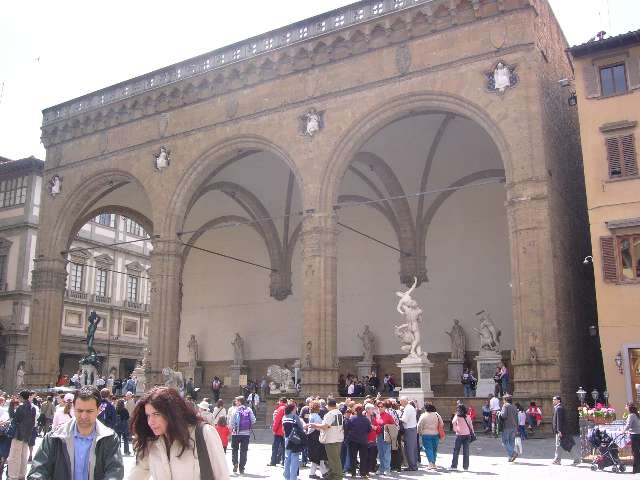 フィレンツェの街には、このロッジアが点在しています。特にヴェッキオ宮のあるシニョーリア広場にある、ランツィのロッジアは有名です。