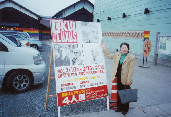 2006年3月10日~13日に大野市誓念寺と平成大野屋の二会場で開催された「福井フルクサス4人展」オープニングにて、社長