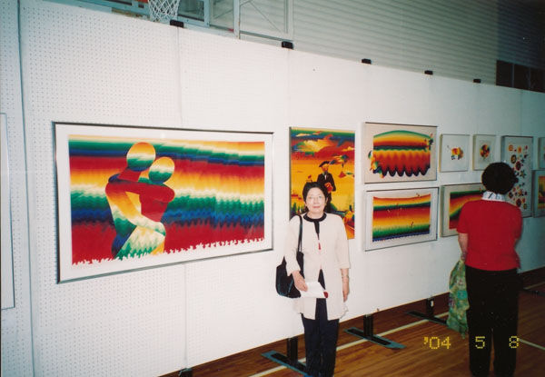 2004年5月8日~16日に多田記念大野有終会館で開催された「虹のふるさと大野 靉嘔展」のオープニングにて。靉嘔先生と社長。