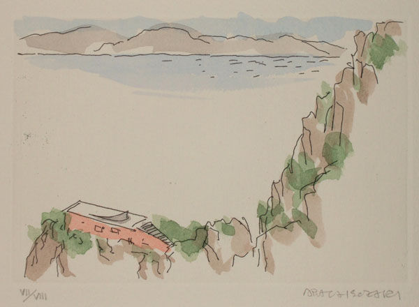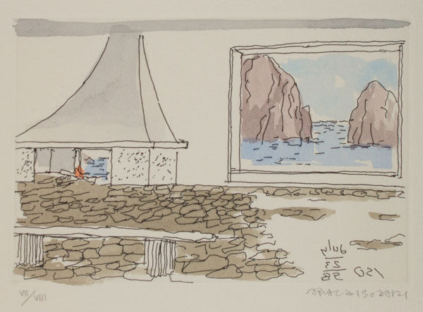 さて肝心の、磯崎さんの書簡本文と銅版画については、御自身で見ていただければ十分でしょう。第一信の生原稿に接して、私たちにとっても、この企画がますます楽しいものとなってきました。一二の栖に関する資料も私たちなりにあれこれと漁っていますが、今回のカサ・マラパルテに関しては、ゴダールの『軽蔑』のビデオを買ってきて見直すよい機会を得ました。これ必見です。