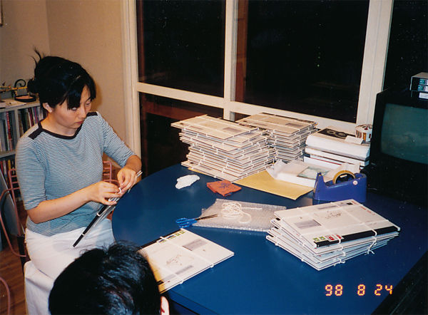 一つ一つのパッケージにエッセイ、銅版画、事務局からのお便りをいれ、切手をはり、紐掛けをする、まるで内職仕事でした。