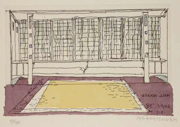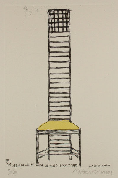 今回のエッチングはドローイング・ルーム(この家では機能としては居間に近いようです)のアルコーブが描かれています。その出窓の表情に、マッキントッシュという名を越えた、さまざまなシーンが見えてしまうのは当然です。