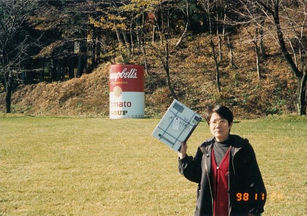 3mを越す巨大なウォーホルのキャンベルスープ缶の前で記念撮影。