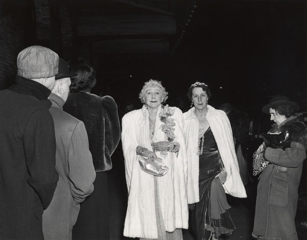 着飾った二人の女性と、その二人を右側から睨みつけるようにしている女性。(図1)ウィージー(Weegee, 本名Arthur Fellig, 1899-1968)が1943年11月22日、ニューヨークのメトロポリタン歌劇場で撮影したこの写真は、12月6日刊行の「ライフ」誌上で、歌劇場60周年記念公演の初日の様子を報じる記事の中で掲載されました(図2)。「上流社会の人々」という題名は、この記事の中で写真のキャプションとして添えられていたもので、着飾った二人の女性——ニューヨークの社交界の著名人だったジョージ・ワシントン・カヴァノー夫人(1867 - 1954)(左)とデシーズ夫人(1868-1944)(右)——のことを指しています。(この写真は、「The Critic(批評家)」という題名でも知られていますが、「The Critic」という題名は1945年に刊行された写真集『Naked City(裸の街)』に収録された際に添えられたキャプションです。)