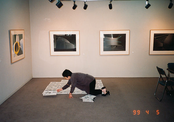 「磯崎新 新作版画展」開催中の画廊の床に『栖十二』第八信を並べて記念撮影。
