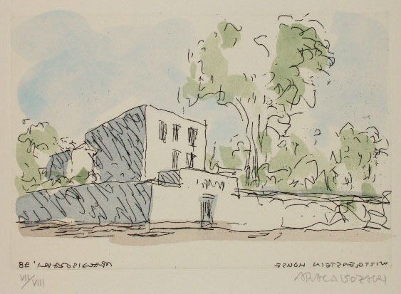 磯崎新が古今東西の建築家12人に捧げたオマージュとして、12軒の栖を選び、描いた銅版画連作〈栖十二〉全40点を出品、全て作家自身により手彩色が施されています。