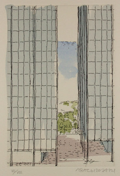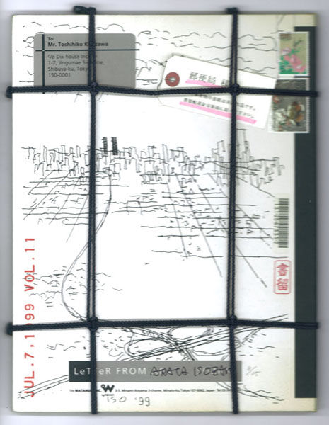 予め予約購読者を募り、書簡形式の連刊画文集『栖 十二』―十二章のエッセイと十二点の銅版画―を十二の場所から、十二の日付のある書簡として限定35人に郵送するという、住まいの図書館出版局の植田実編集長のたくみな企画(アイデア)が磯崎先生の制作へのモチベーションを高めたことは間違いありません。