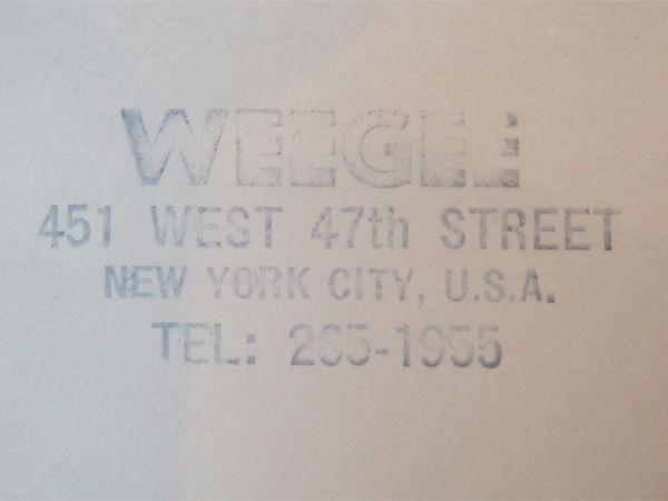 東京近美でも10センチ四方のケルテスやマンレイの10センチ四方の小品の展示も見かけますし、それよりなにより60年前のWEEGEEの「ヴィンテージ」(保証すると言われました。)という言葉に挽かれ、この縁を大切にしようと早速手に入れました。ブックマット額装し飾っています。ただWEEGEEの資料は日本では皆無なんですね。国内のギャラリーもほとんど不明。素人の浅ましさでこんな価格で買ってしまってよかったのか、もっと調べれば‥など考えめぐらしておりました。日本ではときも忘れものでしか取り扱っていないのでしょう。価格なんて気にするな、作品がすきならどうでもいいことだと言われるのを承知でお尋ねします。良い買い物だったのか、勉強不足の銭失いだったのか。すみません。