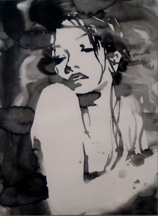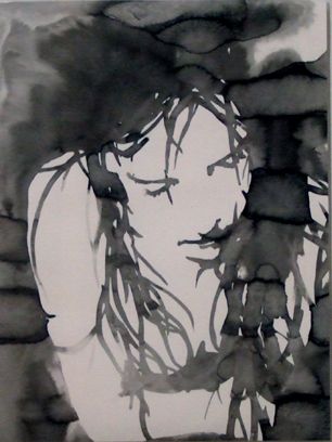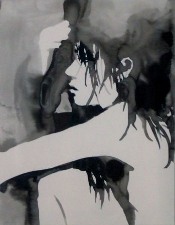 君島さんは紙に墨による人物画を描いています。