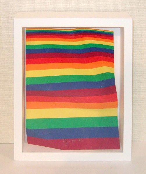 ですから500部が一枚一枚異なります。潰された虹の版画をそのまま箱型のケースにおさめたのが下の写真です。