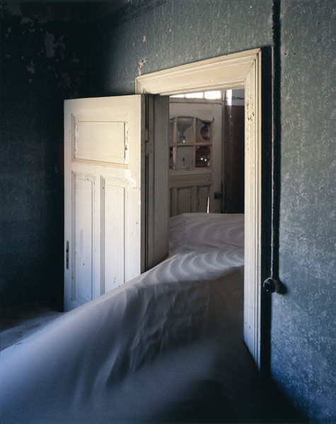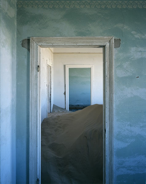 ただ、たとえば約一世紀前にダイヤモンド・ラッシュに湧いたナミビアの砂漠地帯に建造されたドイツ人たちの住宅が、砂に半ば埋もれている光景など、題材としての面白さと、8×10インチの大判カメラを完璧に使いこなす技術の高さは認めざるをえないにせよ、なぜ彼らがこれらの作品を撮影しなければならなかったという動機の部分については、正直よくわからなかった。ところが、今回のプライベートビューイング「自邸『タイルの家』で開く写真展」(2012年5月18日、19日、26日、27日)にゲストとして参加し、お二人の話を聞いたことで、そのあたりがかなりくっきりと見えてきた。
